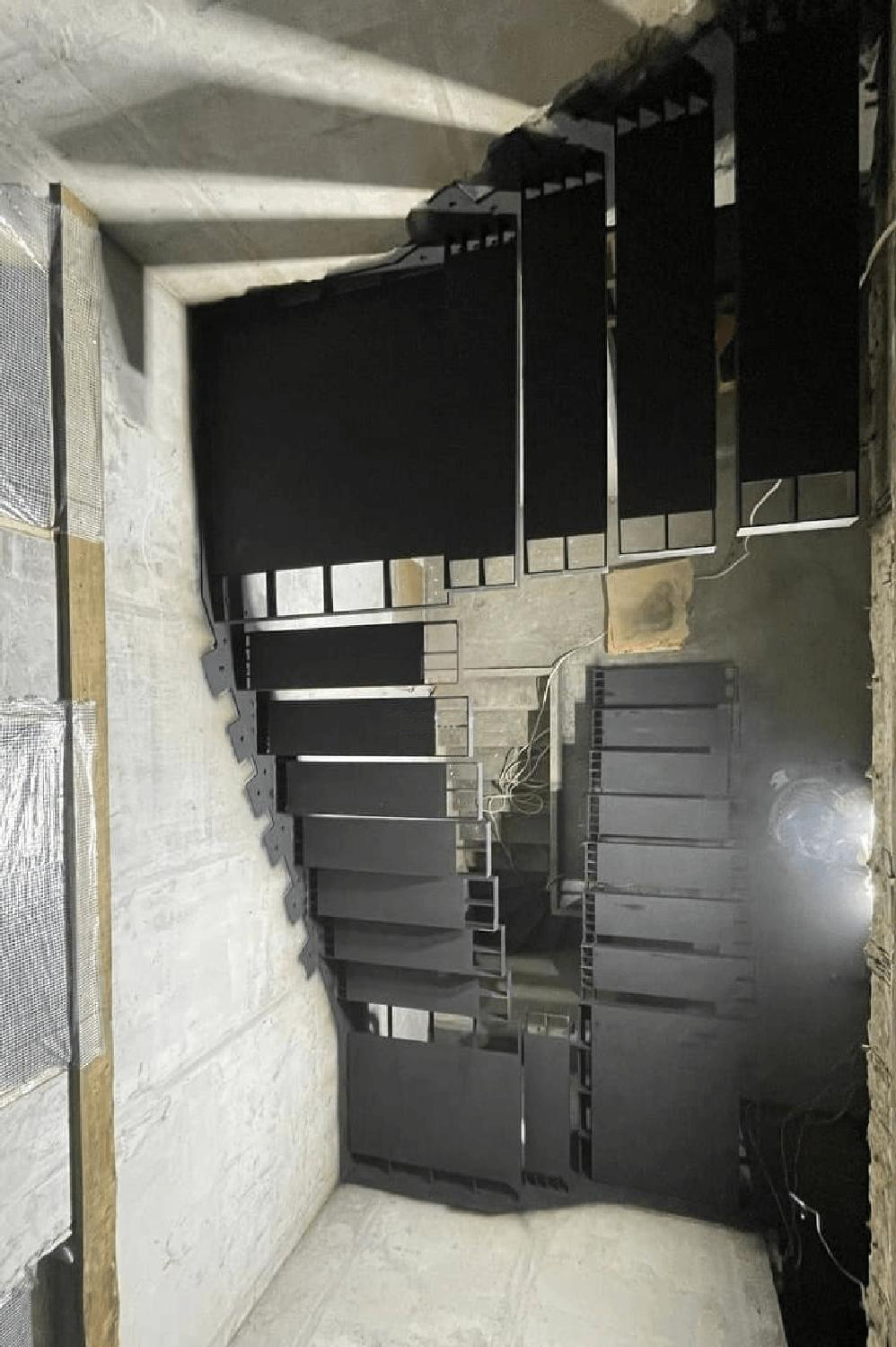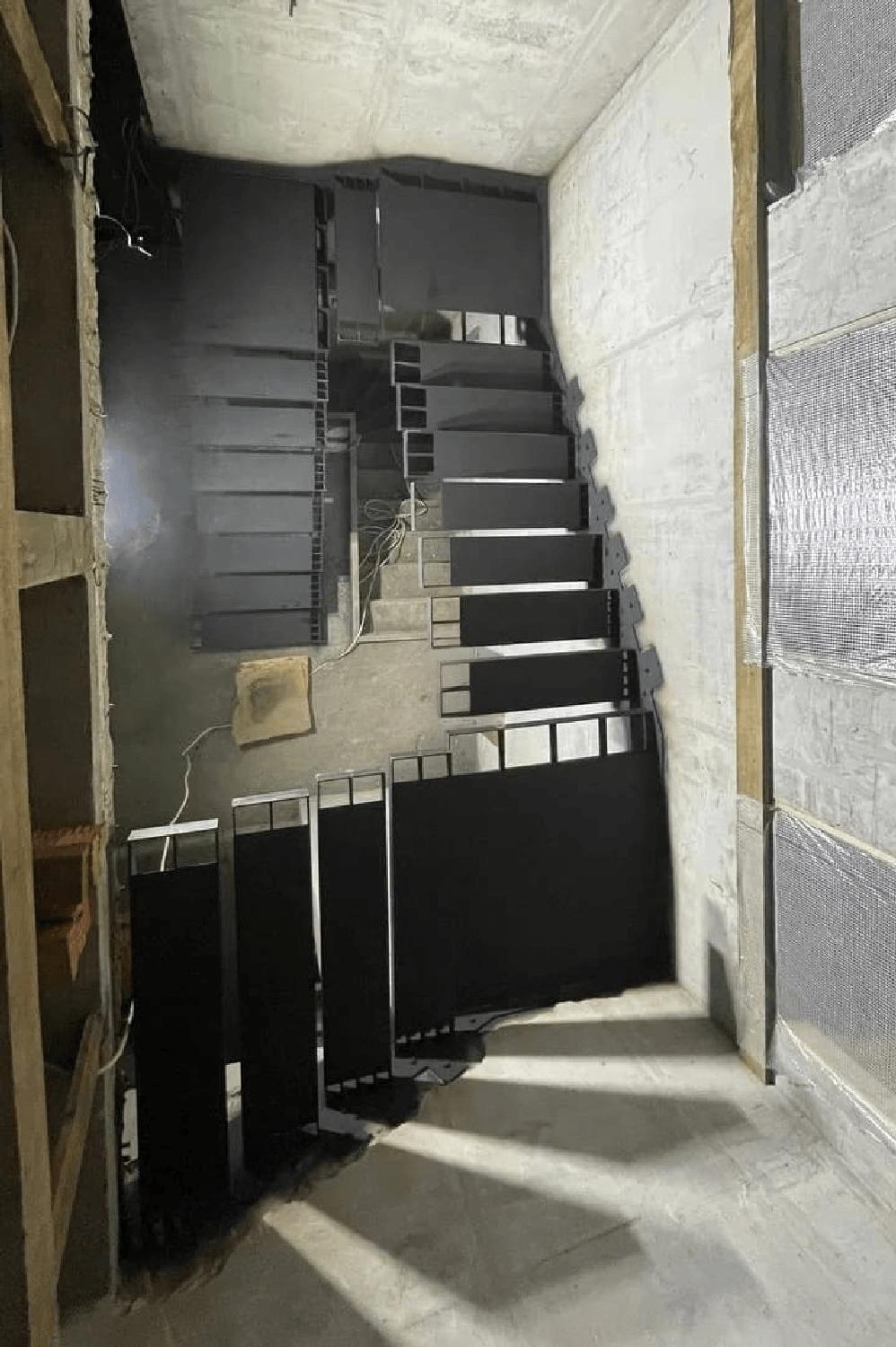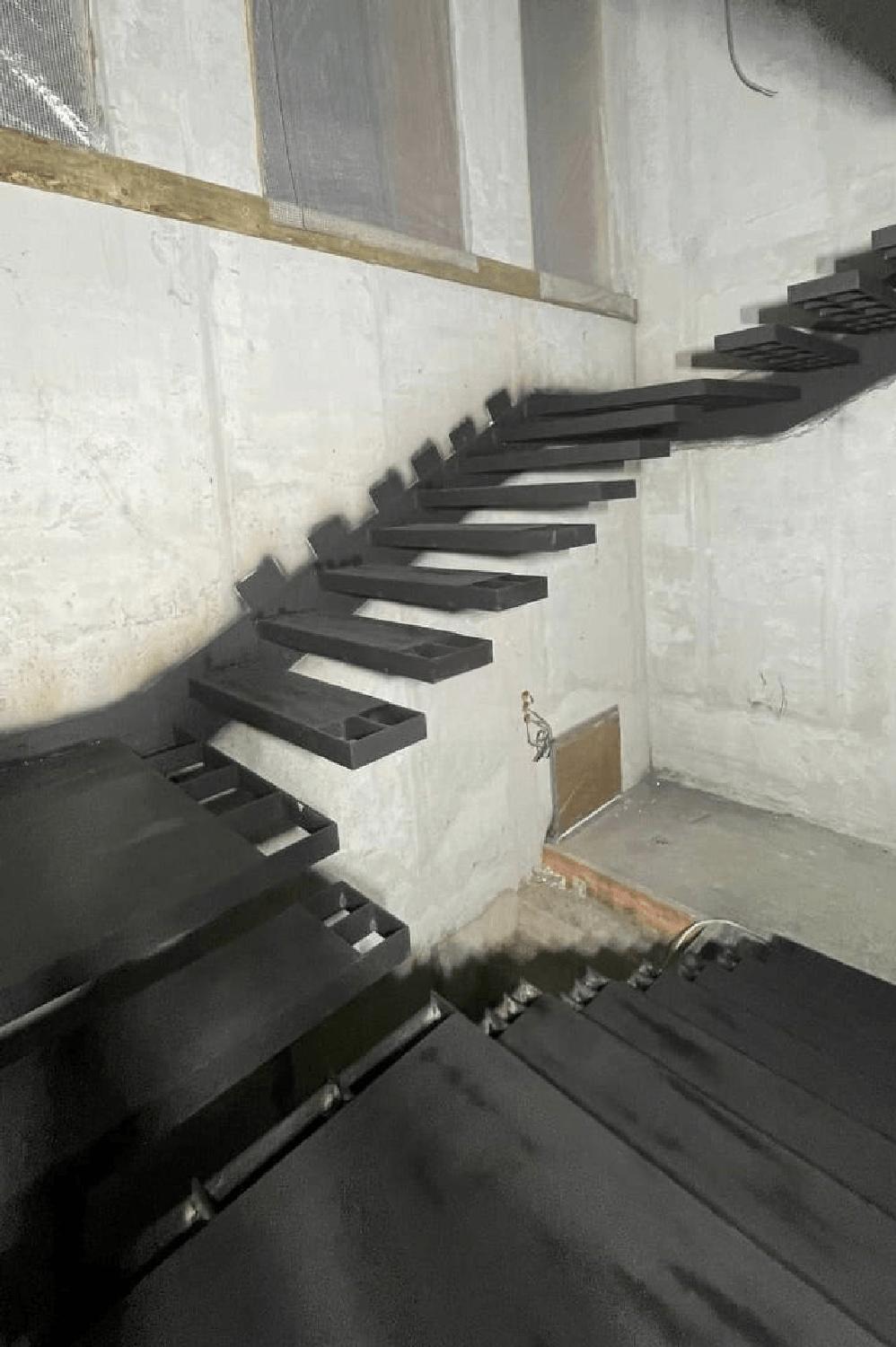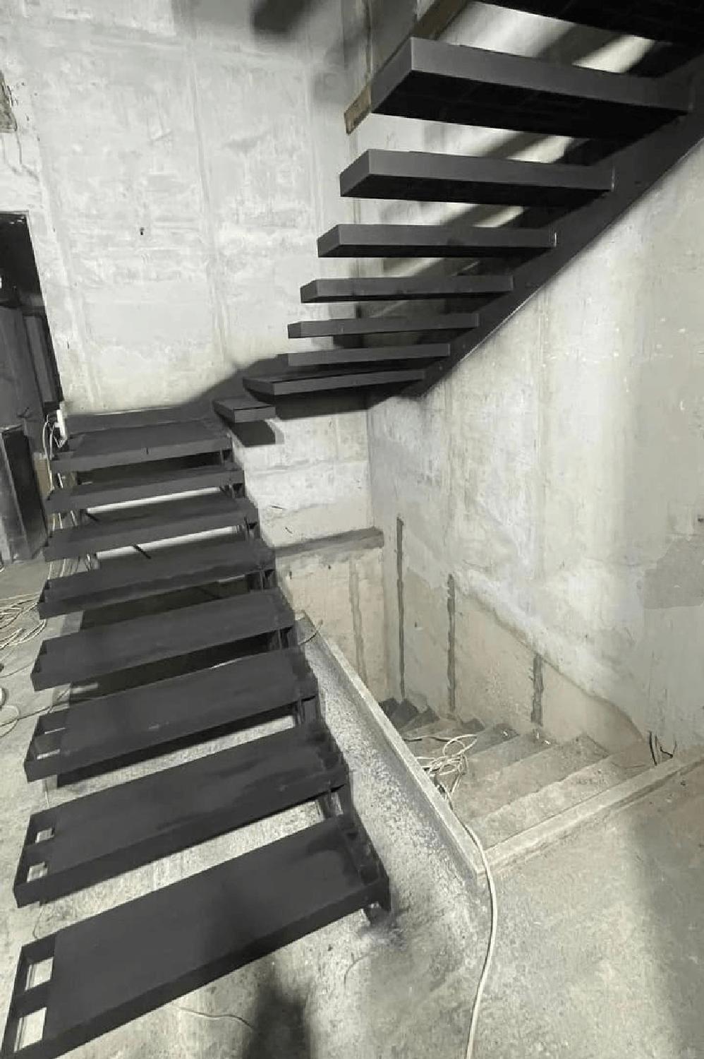 Консольный металлический каркас лестницы открытого типа.