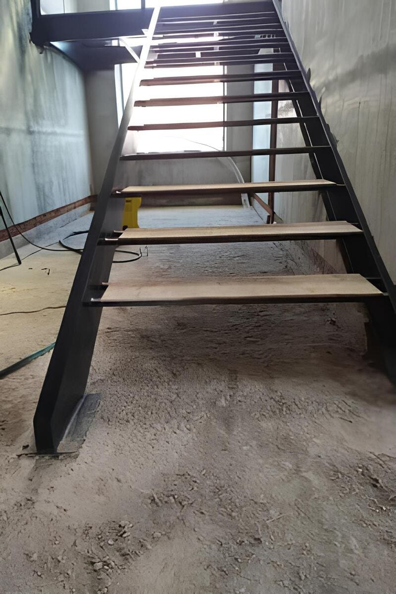 Металлический каркас лестницы закрытого типа из листа металла 6 мм.