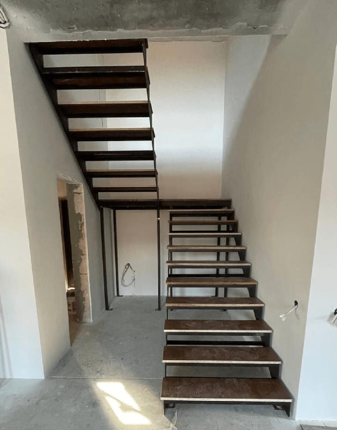 Открытая лестница на двойном металлическом косоуре.